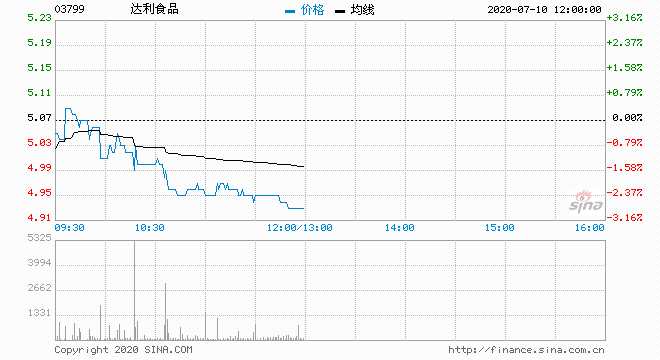 麥格理發(fā)布報告稱,達利食品的食品銷售于3月底回暖,因補充庫存所致,上漲趨勢將于5月及6月持續(xù)。飲品銷售于5月回復增長,同時勝該行預期。麥格理升達利上半年銷售預期,預計跌6.7%,與達利中至高單位數(shù)跌幅的指引相符,同時升今明兩年盈利預測分別11%及6%;維持“跑輸大市”評級,目標價由3.7元升至3.9元。
