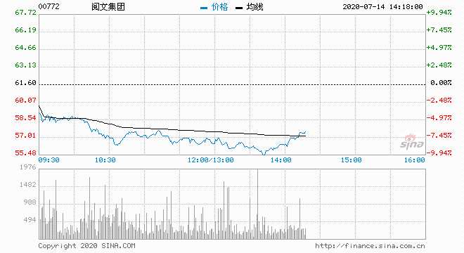 閱文集團(tuán)跌近10% 報55.55港元