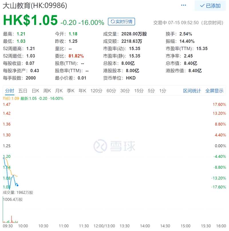 大山教育開盤即破發(fā),盤中一度大跌16%