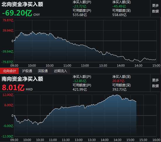 收評:北向資金凈流出69.2億元 滬股通凈流出23.72億元