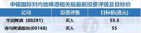 中銀國際:內(nèi)地啤酒相關股最新評級及目標價(表)