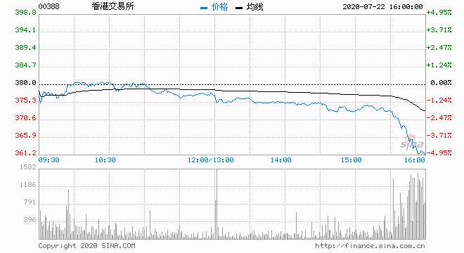 港交所跌近5%惟曾破頂 報(bào)362港元