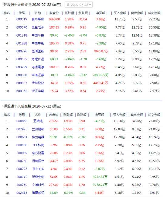 7月22日消息,北向資金凈流入41.7億元,今日凈買入格力電器(000651,股吧)12.94億元、京東方A5.60億元,凈賣出中國中免6.50億元、中國平安5.25億元。