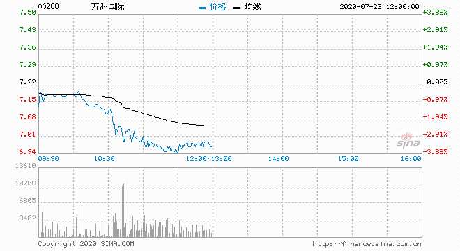 摘要: 萬洲國際(00288)跌3.32%,報(bào)6.98元,穿二十天(7.127元)、百天線(6.972);成交約2732萬股,涉資1.94億元。