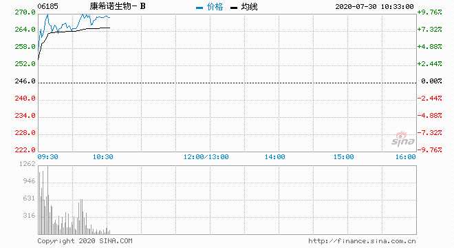 康希諾生物 B(06185) 266.80元 升8.46%