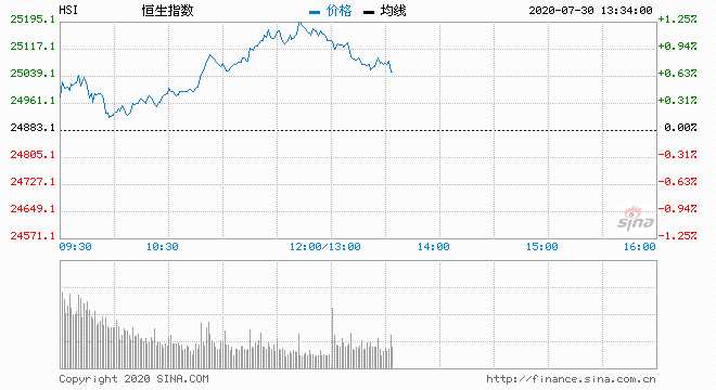 摘要: 美國聯(lián)儲局維持利率不變,重申將動用所有工具支持經(jīng)濟復蘇,隔晚美股三大指數(shù)向好.本港今日為期指結(jié)算日,恒指今早高開96點報24979點后,升幅持續(xù)擴大至174點報25057點,