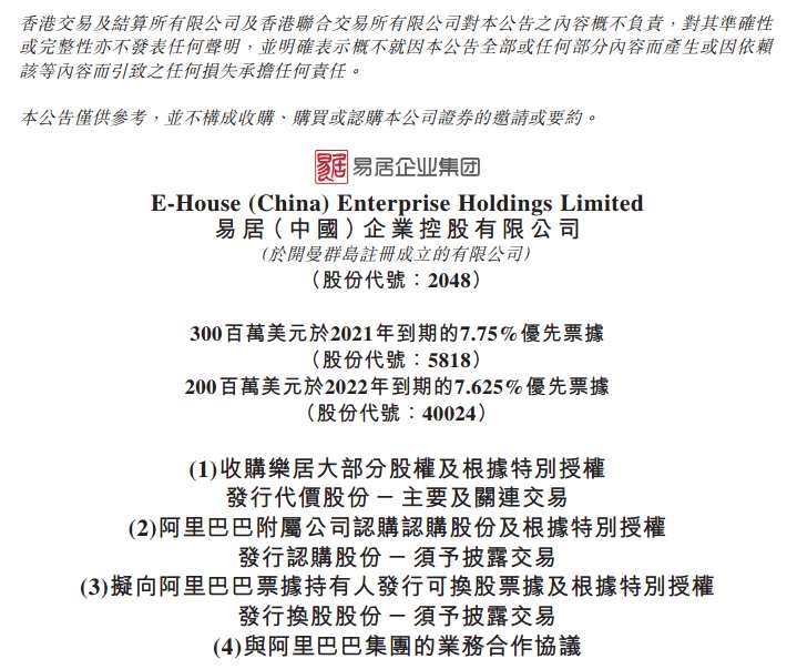 在此基礎(chǔ)上,雙方還簽署可轉(zhuǎn)股票據(jù)認(rèn)購(gòu)協(xié)議。據(jù)此,阿里將認(rèn)購(gòu)易居本金為10.319億港元、三年期、利息每年2%的可轉(zhuǎn)股票據(jù),票據(jù)轉(zhuǎn)股價(jià)為每股10.37港元。若該等可換股票據(jù)全部轉(zhuǎn)股,阿里持有易居股份比例將提升至大約13.26%,躍居第二大股東。
