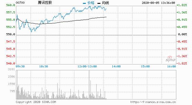 騰訊控股(00700) 559.00元 升1.64%