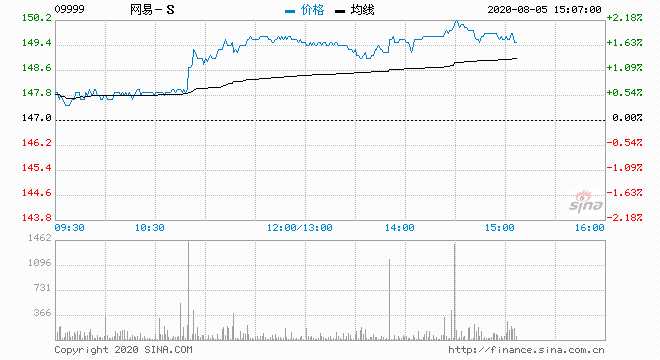 網(wǎng)易 (09999) 150.00元 升2.04%