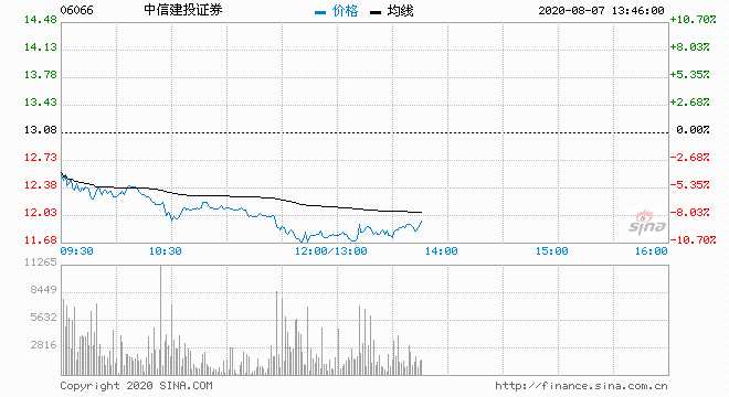 中信建投證券(06066)午后跌幅擴(kuò)大至9.79%,報(bào)11.8元;成交約3710萬股,涉資4.51億元。