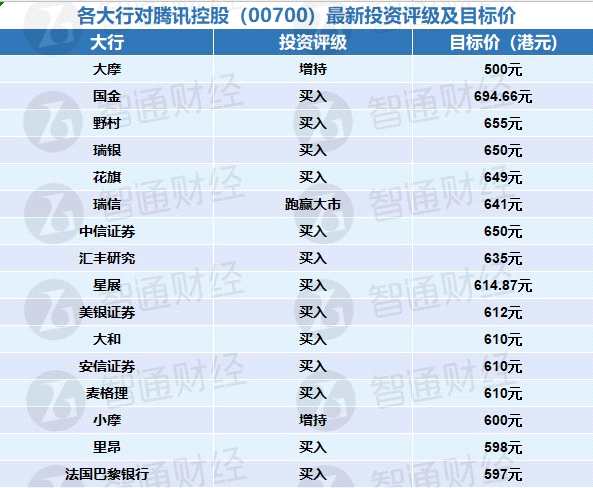 大行:騰訊控股最新投資評(píng)級(jí)及目標(biāo)價(jià)(表)
