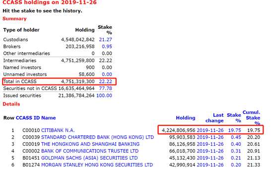 阿里巴巴若納入恒指,流通股將會是多少呢?新浪港股統(tǒng)計,根據(jù)第二上市規(guī)則,阿里流通股只按香港股本計算,根據(jù)CCASS數(shù)據(jù),香港中央結(jié)算系統(tǒng)持有47.513億股,減去花旗持有的42.248億股,阿里港股股本(流通股)持倉為14.634億股,目前市值為1276億港元。