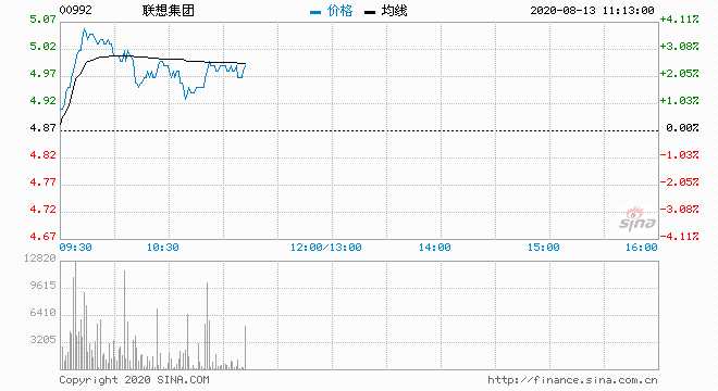 聯(lián)想集團(00992) 5.02元 升3.08%