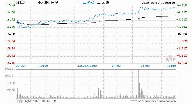 小摩升小米集團-W(01810)評級至“超配”,目標價上調(diào)至21港元。