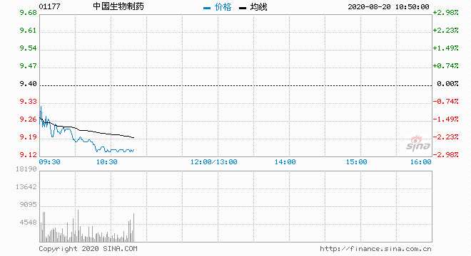 摘要: 中國生物制藥(01177)現(xiàn)價(jià)跌2.45%,報(bào)9.17元;成交約1389萬股,涉資1.28億元。