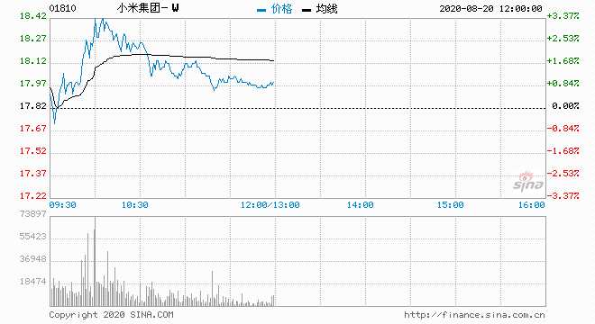藍籌新貴小米集團(01810)現(xiàn)價逆市升1.347%,報18.060元,以現(xiàn)價計,該股暫連升7日,累計升幅20.24%;成交約1.43億股,涉資26.00億元。
