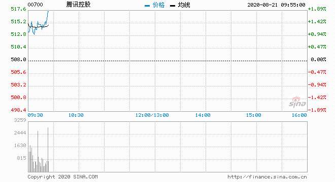 騰訊控股(00700) 513.50元 升1.08%