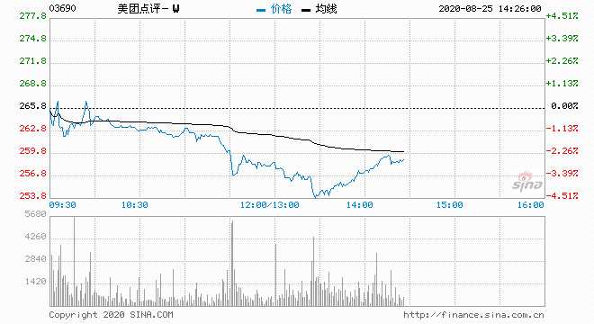 美團點評(03690)現(xiàn)價跌4.44%,報254元;成交約1776萬股,涉資46.39億元。