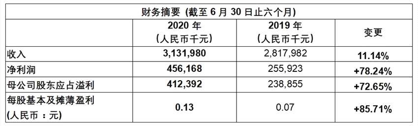 2020年上半年,在衛(wèi)生事件蔓延、地緣政治危機(jī)、大宗商品價(jià)格大幅震蕩及各國貨幣寬松政策的影響下。集團(tuán)以“大戰(zhàn)、大考、機(jī)遇”為工作主線,扎實(shí)開展“五優(yōu)競賽”、“攻堅(jiān)行動”、“結(jié)對幫扶”等活動,取得了來之不易的發(fā)展成績?;仡櫰趦?nèi),集團(tuán)收入約為人民幣3,131,980,000元,比去年同期增長了約11.14%,銷售收入增長的主要原因是2020年上半年黃金價(jià)格大幅上升及科學(xué)生產(chǎn)組織所致。凈利潤約為人民幣456,168,000元,比去年同期增長了約78.24%,超過去年全年438,235,000元的凈利潤規(guī)模。母公司股東應(yīng)占溢利約民幣412,392,000元,比去年同期增長約72.65%。半年業(yè)績僅次于2012年上半年的495,398,000元,創(chuàng)8年來最好業(yè)績。每股基本及攤薄盈利約人民幣0.13元,比去年同期增長了約85.71%。
