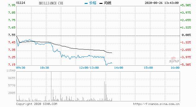 華晨中國(guó)跌逾5% 報(bào)7.16港元