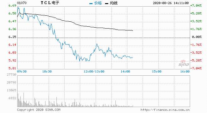 TCL電子(01070)現(xiàn)價跌4.32%,報5.98元;成交約3867萬股,涉資2.47億元。