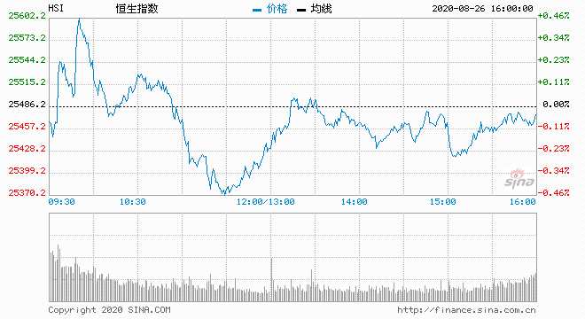 8月26日消息,美股周二收盤(pán)漲跌不一,納指與標(biāo)普指數(shù)再創(chuàng)歷史最高盤(pán)中與收盤(pán)紀(jì)錄。美國(guó)疫情形勢(shì)持續(xù)改善。國(guó)際經(jīng)貿(mào)緊張關(guān)系趨緩。今日開(kāi)盤(pán),恒生指數(shù)漲0.13%,隨后走勢(shì)反復(fù)。截止收盤(pán),恒生指數(shù)漲0.02%,報(bào)25491.79點(diǎn),國(guó)企指數(shù)漲0.08%,紅籌指數(shù)漲0.16%。
