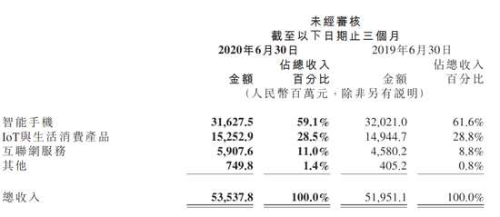2)智能手機(jī)銷量下滑,均價提高近百元。公司上半年智能手機(jī)分部收入達(dá)619.52億元,第二季度收入較上季度增加4.3%至316.28億元。今年二季度公司售出2830萬部智能手機(jī),少于上季的2920萬部,出貨量減少主要是由于疫情影響所致,尤其是海外市場。第二季度智能手機(jī)平均銷售價格(ASP)為每部1116.3元,高于首季的1038元,主要由于第二季度中高端智能手機(jī)型號的銷售額增加所致。