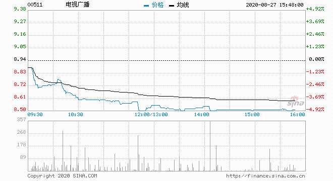 電視廣播(00511)現價跌4.81%,報8.510元;成交約47萬股,涉資406萬元。