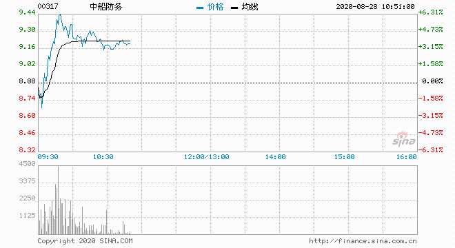中船防務(wù) ?。?0317) 9.250元 升4.17%