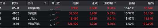 餐飲股集體飆升,呷哺呷哺漲10%,海底撈漲5.6%,再創(chuàng)新高,九毛九漲5%,頤海國際漲4%。業(yè)內(nèi)人士認(rèn)為,隨著下半年餐飲行業(yè)進(jìn)入旺季,頭部的餐飲企業(yè)享受資本的紅利屬于正?,F(xiàn)象。相比之下,中小餐飲企業(yè)則迎來了“關(guān)店潮”。大型的龍頭餐飲企業(yè)在品牌、資金、供應(yīng)鏈和抗風(fēng)險能力等方面的實力,是中小餐飲企業(yè)所無法比擬的。也正因此,在疫情期間,龍頭餐飲企業(yè)得以繼續(xù)擴(kuò)張。