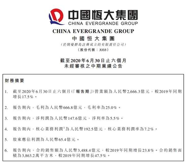 半年銷售3488億!恒大半年業(yè)績(jī)出爐 透露一個(gè)大動(dòng)作