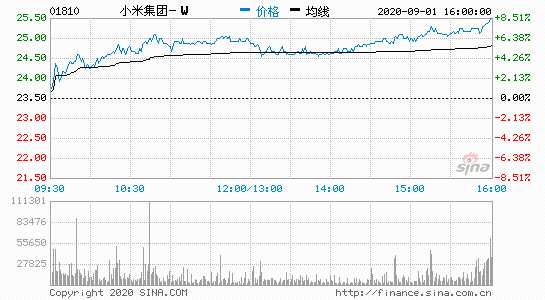 摘要: 9月1日下午消息,香港恒指收漲0.03%,其中騰訊控股漲1.60%,阿里巴巴收平,小米集團漲8.94%,美團點評漲3.52%。