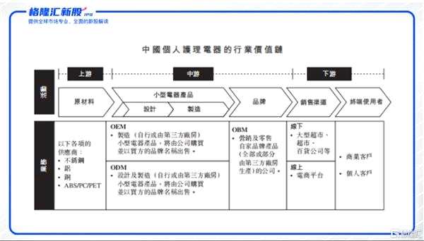 科利實(shí)業(yè)在招股書(shū)中的定位是中國(guó)第三大個(gè)人護(hù)理電器OEM/ODM(貼牌/代工)供應(yīng)商,主要以代工模式從事設(shè)計(jì)、開(kāi)發(fā)及制造個(gè)人護(hù)理和生活時(shí)尚電器,公司的客戶主要為國(guó)際品牌,其產(chǎn)品主打美國(guó)、日本及歐洲市場(chǎng)。