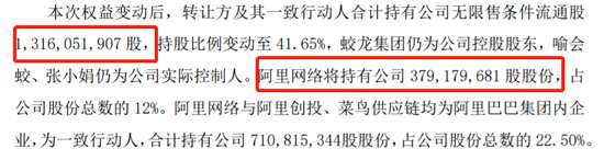 圓通速遞實(shí)控人擬以66億元總價向阿里巴巴(09988)轉(zhuǎn)讓12%股權(quán)。轉(zhuǎn)讓完成后,蛟龍集團(tuán)等轉(zhuǎn)讓方及其一致行動人合計持有公司股份占公司股份總數(shù)的41.65%,控股股東和實(shí)際控制人不變。阿里網(wǎng)絡(luò)將持有圓通速遞12%股份。阿里網(wǎng)絡(luò)與阿里創(chuàng)投、菜鳥供應(yīng)鏈均為阿里巴巴集團(tuán)內(nèi)企業(yè),為一致行動人,合計持有22.5%的圓通速遞股份。
