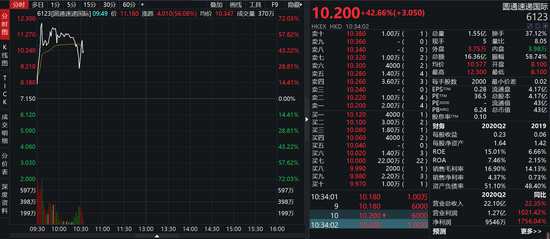 圓通速遞國際今日早間一度站上12港元大關(guān),目前股價大幅回落,漲幅一度收窄至不足30%,目前再度上漲至42%,公司股價換手率高達(dá)37%,成交1.55億股。從前日收盤價至今日最高價計算,區(qū)間暴漲了5.18倍。但如果從高點(diǎn)12.3港元至今日低點(diǎn)9港元計算,圓通速遞國際大跌26%。