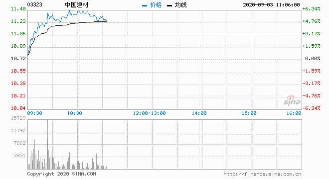 水泥股全線上揚(yáng) 中國(guó)建材漲超5%