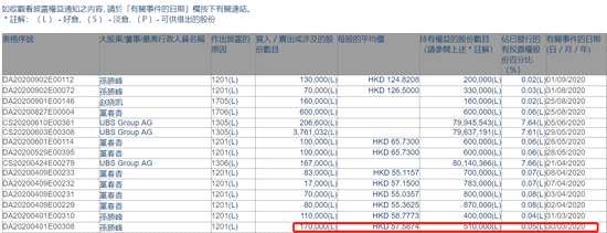 根據(jù)聯(lián)交所最新權(quán)益披露資料顯示,2020年8月31日-9月1日,頤海國際(01579.HK)遭執(zhí)行董事孫勝峰在場內(nèi)以每股均價126.5港元及124.8208港元合計減持20萬股,涉資約2508.17萬港元。減持后,孫勝峰最新持股數(shù)目為200,000股,持股比例由0.04%下降至0.02%。