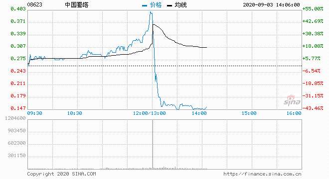 9月3日消息,中國蜀塔上演高臺(tái)跳水,公司股價(jià)暴跌40%,近2億市值瞬間蒸發(fā),目前公司市值只有1.2億港元。