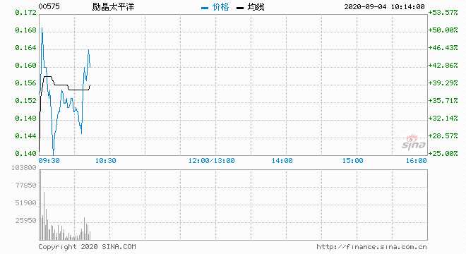 勵晶太平洋(601099,股吧)(00575)擬增發(fā)4.23億股收購DLI以進軍長壽醫(yī)學新興領(lǐng)域,早盤股價大幅上揚,暫居漲幅榜首位,截至9時20分,漲30.36%,報價0.146港元,成交額740.38萬。