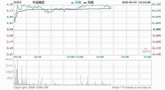 中遠(yuǎn)海控漲超8% 獲中金升目標(biāo)價(jià)至5.38港元