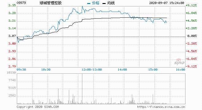 綠城管理控股漲4.56%,報(bào)3.21港元,成交額3183.11萬港元。
