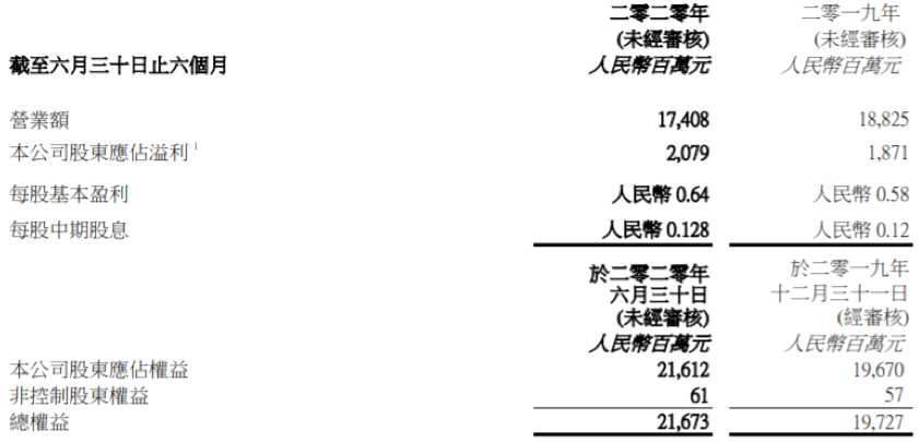 華潤啤酒2020年上半年部分財務數(shù)據(jù)