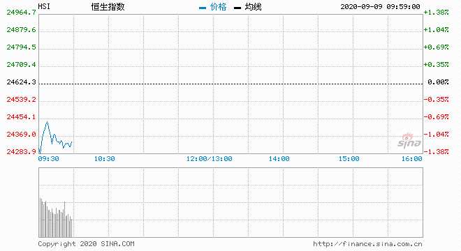 恒生指數(shù)開盤跌328.92點(diǎn)或1.34%,報24295.42點(diǎn)。國企指數(shù)跌1.42%,報9690.96點(diǎn)。紅籌指數(shù)跌1.11%,報3783.64點(diǎn)。大市盤前成交22.92億港元。