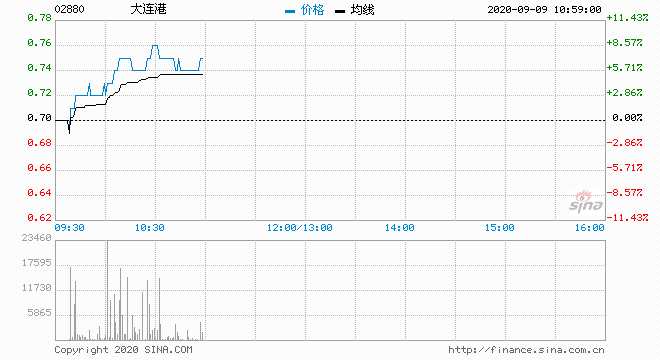 大連港今日逆市上揚(yáng),現(xiàn)漲7.14%,報(bào)0.75港元,成交額1683.49萬(wàn)港元。