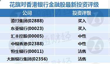花旗:香港銀行金融股最新投資評級(表)
