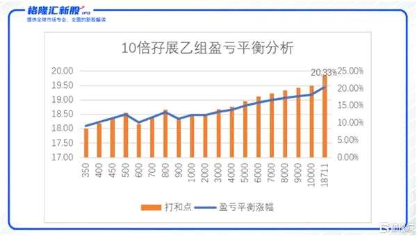 從上面兩張圖可以看出,10倍孖展和20倍孖展對(duì)于盈虧平衡整體影響不大,兩種情況都呈現(xiàn)“隨著申購手?jǐn)?shù)越大,打和點(diǎn)越高”的態(tài)勢。以10倍孖展為例,盈虧平衡漲幅從9.07%增長到20.33%。乙頭穩(wěn)定分配2手,盈虧平衡點(diǎn)高于分配2手的甲尾,但低于分配1手的甲尾。本次頂頭槌的打和點(diǎn)在兩種情況下依次分別為19.85港幣和20.03港幣,盈虧平衡漲幅在20%附近,與近期大熱票相比不算高。