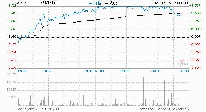 郵儲(chǔ)銀行漲逾3% 領(lǐng)漲內(nèi)銀股