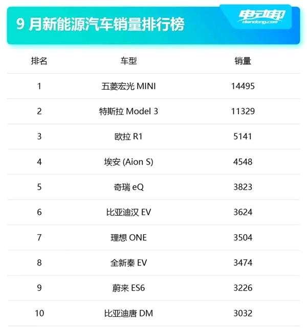 宏光MINI殺瘋了!月銷15000干翻Model 3!9月新能源銷量榜變天了
