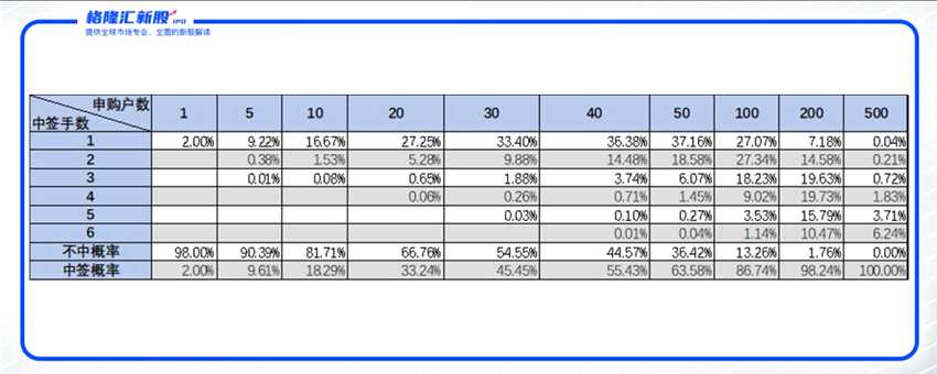 以云頂新耀(1952.HK)的配售為例,從數(shù)據(jù)來(lái)看20個(gè)戶才能勉強(qiáng)做到33.2%的概率中一手及以上。若是全部申購(gòu)一手,一方面是很難找到這么多免費(fèi)的券商,另一方面是很難實(shí)現(xiàn)穩(wěn)中一手,200個(gè)戶都只能實(shí)現(xiàn)98.24%中簽,萬(wàn)一成為剩下的百里挑一,200個(gè)賬戶都白搭。