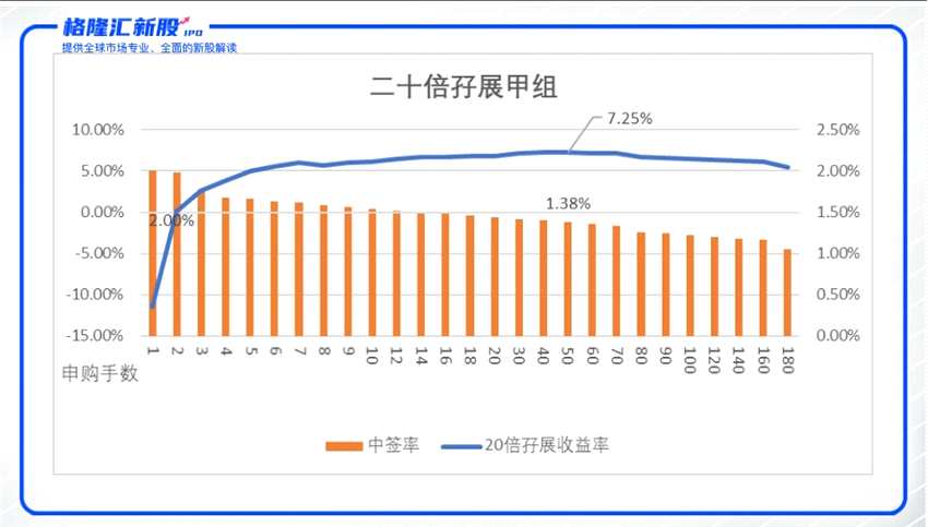 從圖中可以看到,申購(gòu)50手時(shí)資金效率最高,收益率達(dá)到了3.66%。但是,此時(shí)的中簽率僅為1.38%,離穩(wěn)中一手的80手檔位還有距離。若是堅(jiān)持長(zhǎng)期打新且可用自有資金在140萬(wàn)以上,或28萬(wàn)上兩個(gè)10倍孖展的50手無(wú)疑是最優(yōu)的選擇。